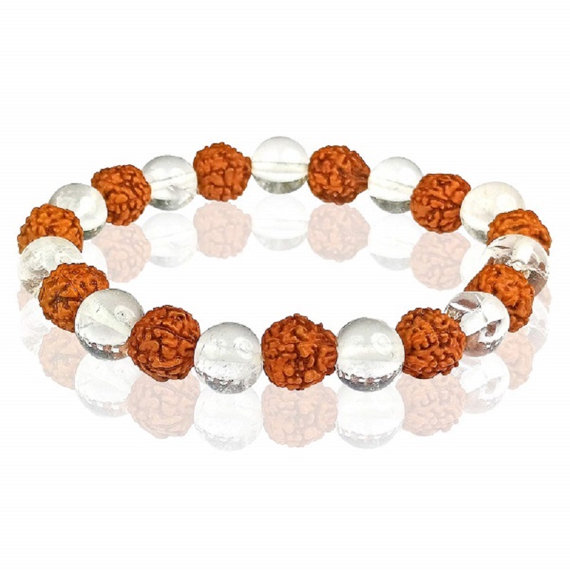Complementing the Rudraksha, the bracelet features carefully selected crystals—such as clear quartz, amethyst, or rose quartz—each known for its unique healing properties. Crystals are believed to amplify positive energies, balance chakras, and promote overall well-being.